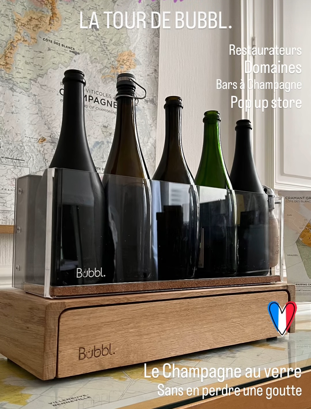 Après ouverture, la conservation requiert plus d’attention : notre système Bubbl maintient une pression idéale (6 à 8 bars) grâce à une cartouche de gaz CO₂/N₂ et un bouchon hermétique. Conservez ensuite la bouteille debout à la température idéale de cave à vin (4-7°C au frigo ou 10-12°C en cave). Cette méthode préserve l’effervescence et la qualité jusqu’à 7 jours.